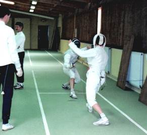 Wir fochten Florett und leichten Säbel. Das es auch die vornehme Disziplin des starren Spanischen Stoßdegens gab, wussten wir, verstanden aber nichts davon. Unser Fechtlehrer und Mentor war Ing. Greger, der es mit dem Training, vor allem mit den Vorübungen – Haltung der Waffe, Körperhaltung, Beinarbeit, Hieb, Stich, Parade – sehr genau nahm. Im übrigen lasen wir eifrig im Lehrbuch und trieben also auch Theorie.
