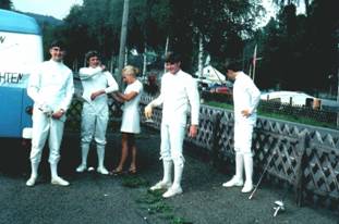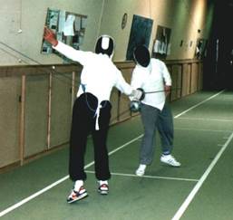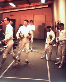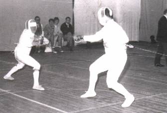 Wie haben wir gekämpft! Die Drei Musketiere waren nichts dagegen. Und unsere Begeisterung für den schönen ritterlichen Sport wuchs mit jedem mal. Was tat es, dass wir ziemlich regelmäßig mit langen roten Striemen - früher witzelte man „Brautnacht-Rennomierer“ – aus den Kämpfen hervorgingen, denn (nichts verraten) meist verzichteten wir auf den schützenden „Panzer“ und leichtsinnigerweise manchmal sogar auf die Drahtmaske...... wenn wir buchstäblich schweißgebadet heimgingen unter die Brause, fühlten wir uns richtig glücklich und „ausgearbeitet“ wie nie zuvor.