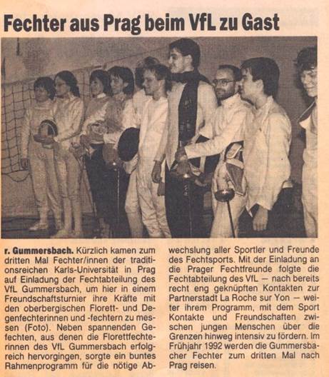 Hans Jürgen Liske unser langjähriges Mitglied und Förderer der Prager Fechtkontakte verlässt uns und wird Leiter der deutschsprachigen Abteilung des F.X.Saldy-Gymnasiums in Liberec (früher Reichenberg) /Tschechien. Dies hat zur Folge , dass die regen sportlichen Kontakte nach Prag einschlafen und nur noch persönliche Verbindungen zu den damaligen Sportlern in Prag bestehen bleiben.