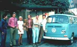 Jahre später Abfahrt am Gummersbacher Gummibahnhof nach Köln-Müngersdorf zum jährlichen Fechtturnier am 17. Juni. Joachim Lölsdorf, Ehepaar Kannengießer, NB, Hans-R. Kohl, Manfred Tobschall