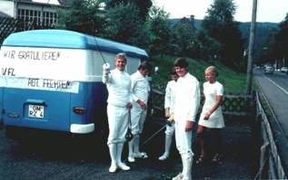 Auf dem Sportgelände in Köln-Müngersdorf Gleicher Personenkreis wie links, zusätzlich: Ulli Herzog mit Freundin
