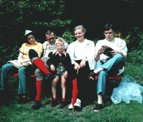 Ca. 1975 Einladung der Familie Roland und Regine Schmidt zur Wanderung durch Bielstein und Umgebung. Anschließend Grillfest. Elisabeth Woelke, Roland und Tim Schmidt, Sigrid und Manred Tobschall.