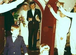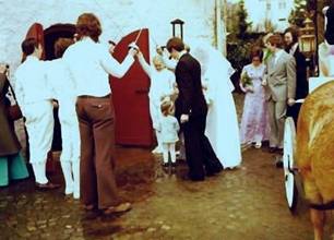 1970: Hochzeit Jürgen und Elisabeth Woelke in Gummersbach-Lantenbach auf dem Vorplatz der Kirche, gegenüber Zeltplatz Aggertalsperre.